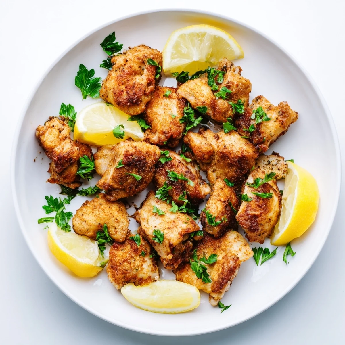 These bite-sized pieces of chicken breast or thighs get marinated in a bright mixture of olive oil, fresh lemon juice, garlic, oregano, and paprika. After a quick 15-minute soak, the air fryer transforms them into golden, crispy bites with juicy interiors. The whole process takes just 30 minutes from start to finish, making them ideal for weeknight dinners or serving as party appetizers. Optional garnishes of fresh parsley and lemon wedges add extra brightness.