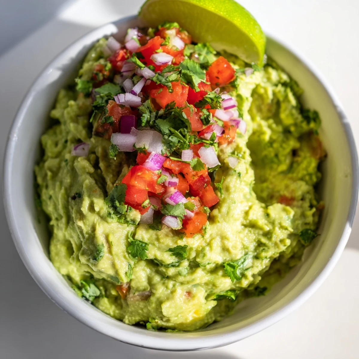 This vibrant guacamole combines ripe avocados mashed to a creamy texture with minced garlic, red onion, cilantro, and freshly squeezed lime juice. The topping of fresh pico de gallo adds a zesty burst of tomato, jalapeño, and more lime, balancing creaminess with brightness. Quick to prepare and naturally gluten-free and vegan, this dish is ideal for dipping, spreading, or as a flavorful topping to many dishes. Adjust spice levels by modifying jalapeño amount or add fruit twists like mango for variety.