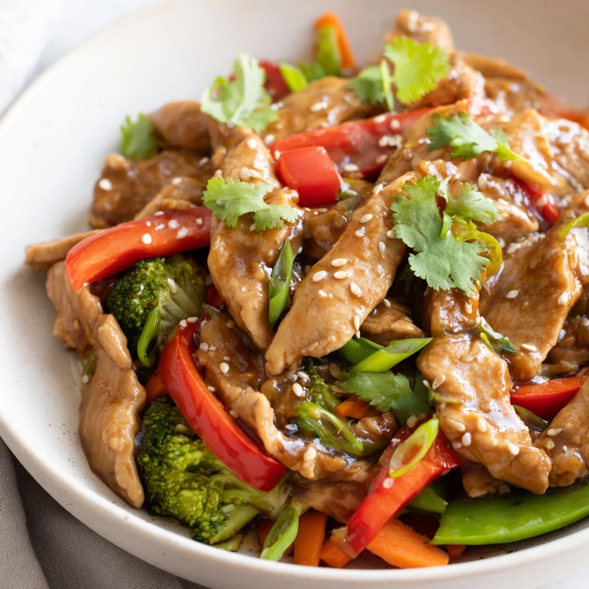 This vibrant stir fry combines thinly sliced chicken breast with colorful vegetables like red bell pepper, broccoli, and snap peas. The savory sauce features soy sauce, toasted sesame oil, honey, and rice vinegar, creating a perfect balance of salty, sweet, and tangy flavors. Ready in under 30 minutes, this dish is ideal for busy weeknights when you want something nutritious and delicious without spending hours in the kitchen.