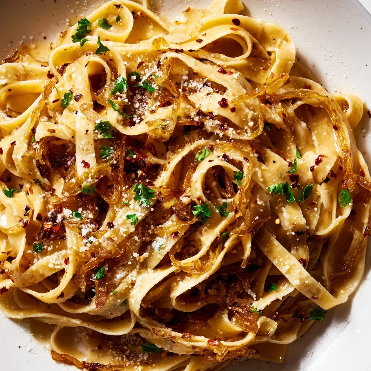 The smell of onions slowly surrendering to heat is my kitchen religion. There is something meditative about standing over a skillet, watching pale slices transform into glistening ribbons of amber sweetness. This pasta came together one rainy Tuesday when the fridge held nothing but onions and cream, and desperation tasted surprisingly luxurious.